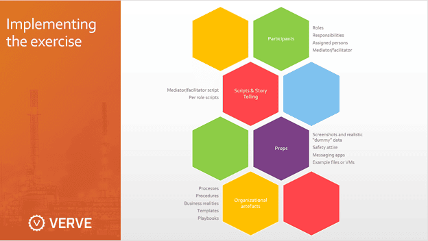The final script needs to contain all the elements with believable roles, relevant screenshots or simulated tooling, props and organization artifacts handy, OT facts such as shared passwords or other common behaviors, and clear start and endpoints.
